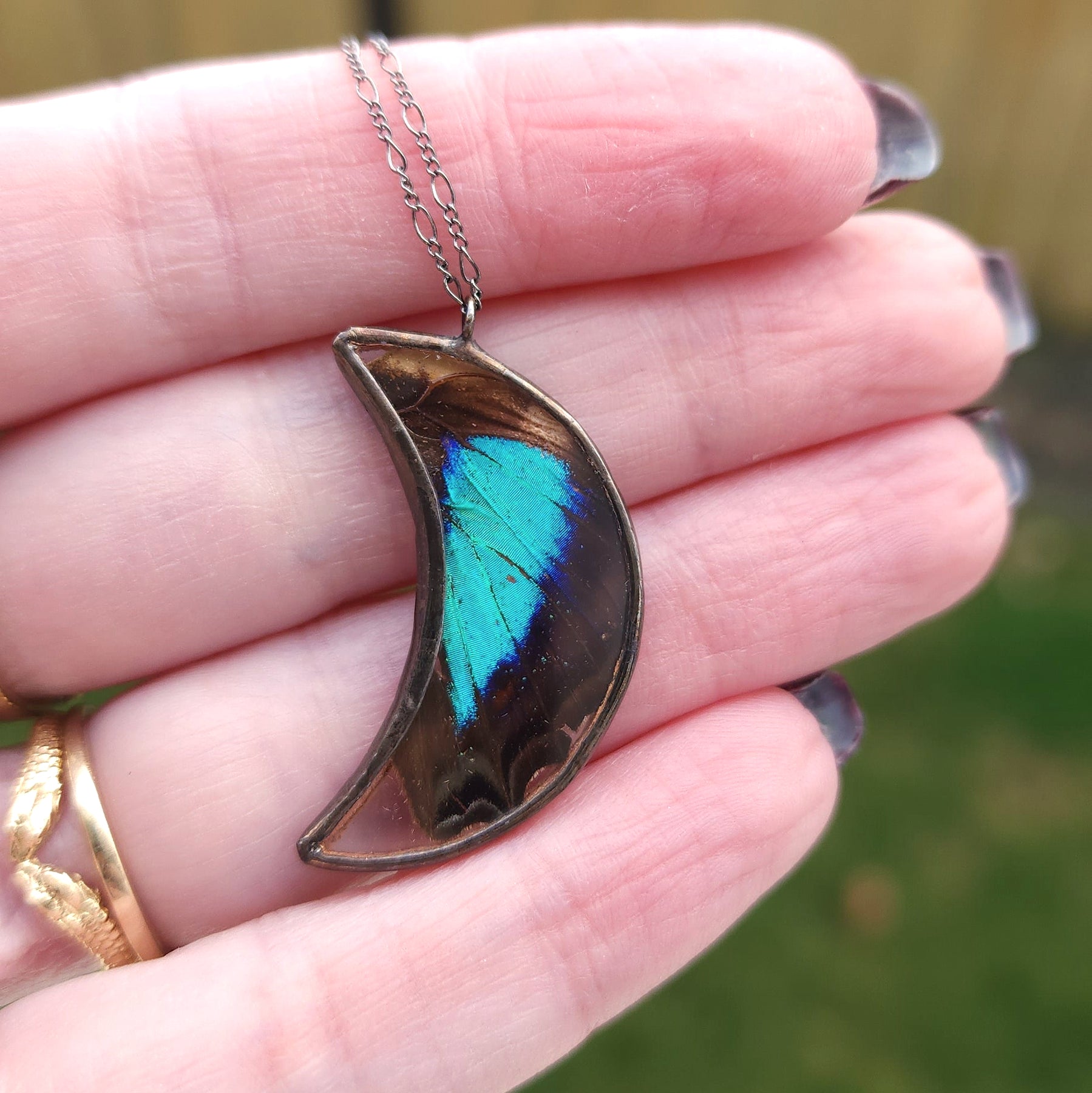 A: No creatures are harmed in the process of creating HartVariations jewelry. We have a No-Harm, Cruelty-Free approach in our work. We source all materials with extreme care and ethical considerations. All the butterflies, beetles and moths we use come from sustainable, licensed butterfly conservation farms working to conserve native insect habitats. Snakeskin is shed naturally, feathers are collected after molting, and the skulls and jawbones come from natural deaths or owl pellets collected in the Pacific Northwest. HartVariations jewelry brings a second life to insects and other elements of nature.