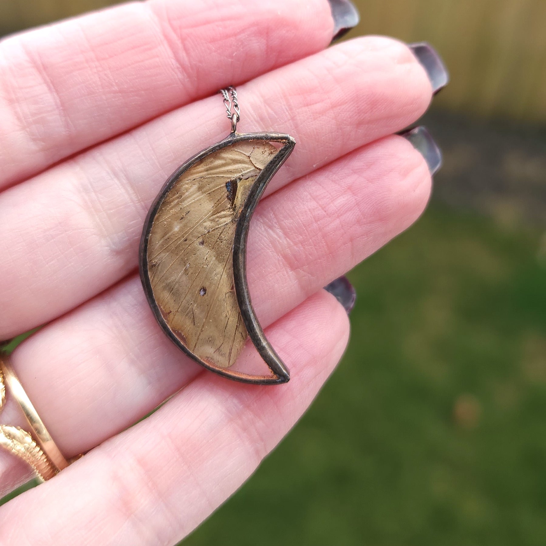 Atlas Moth Crescent Moon Necklace