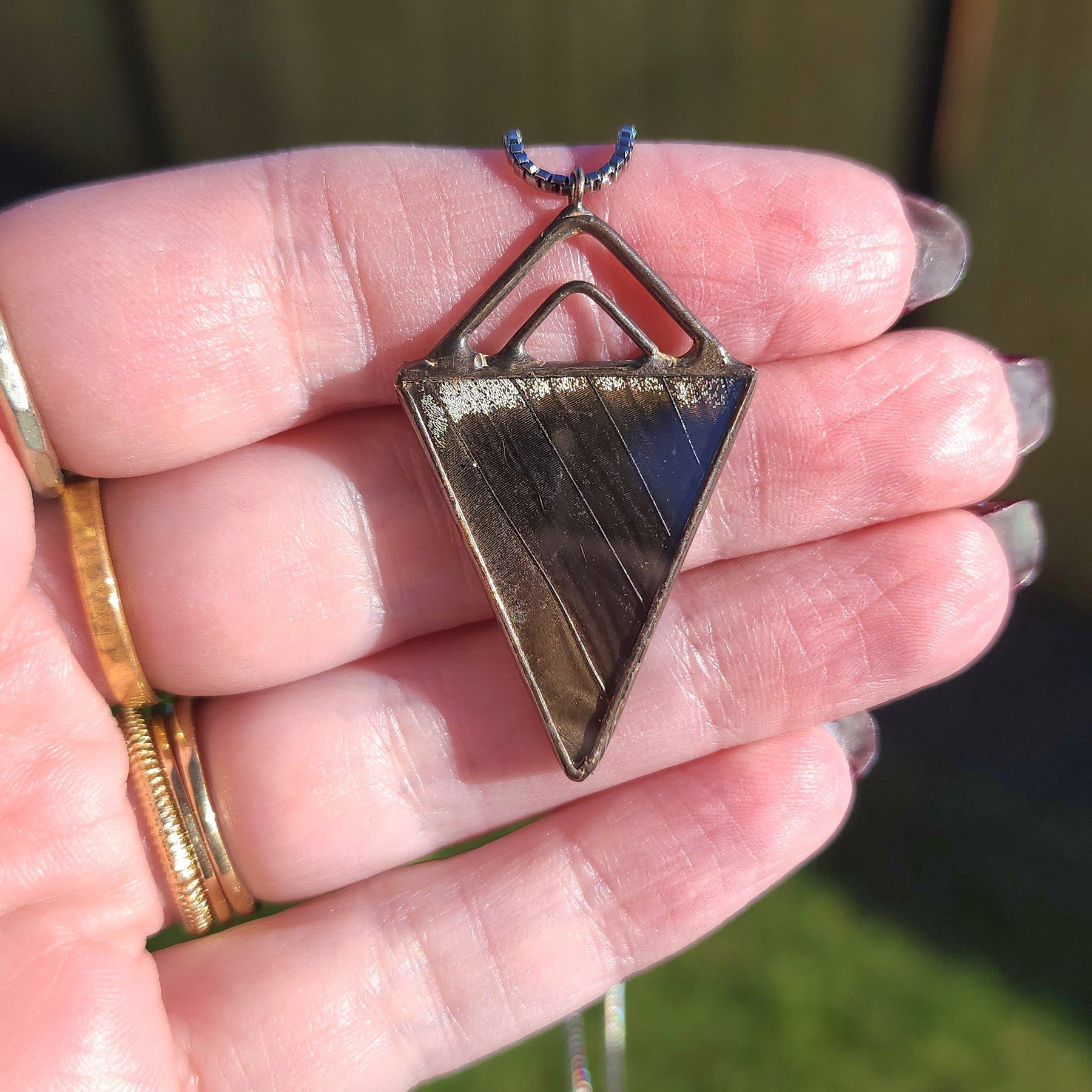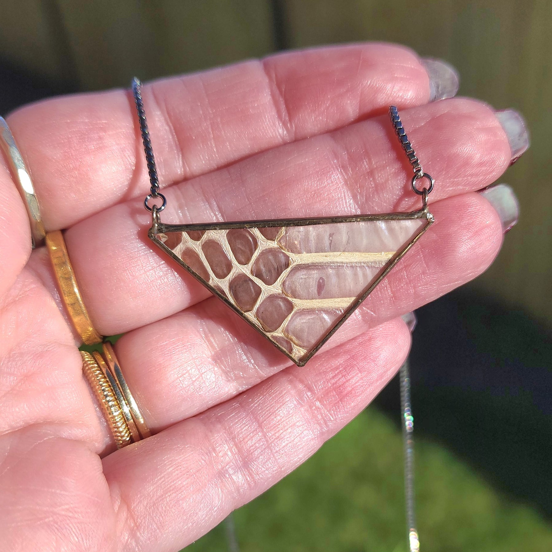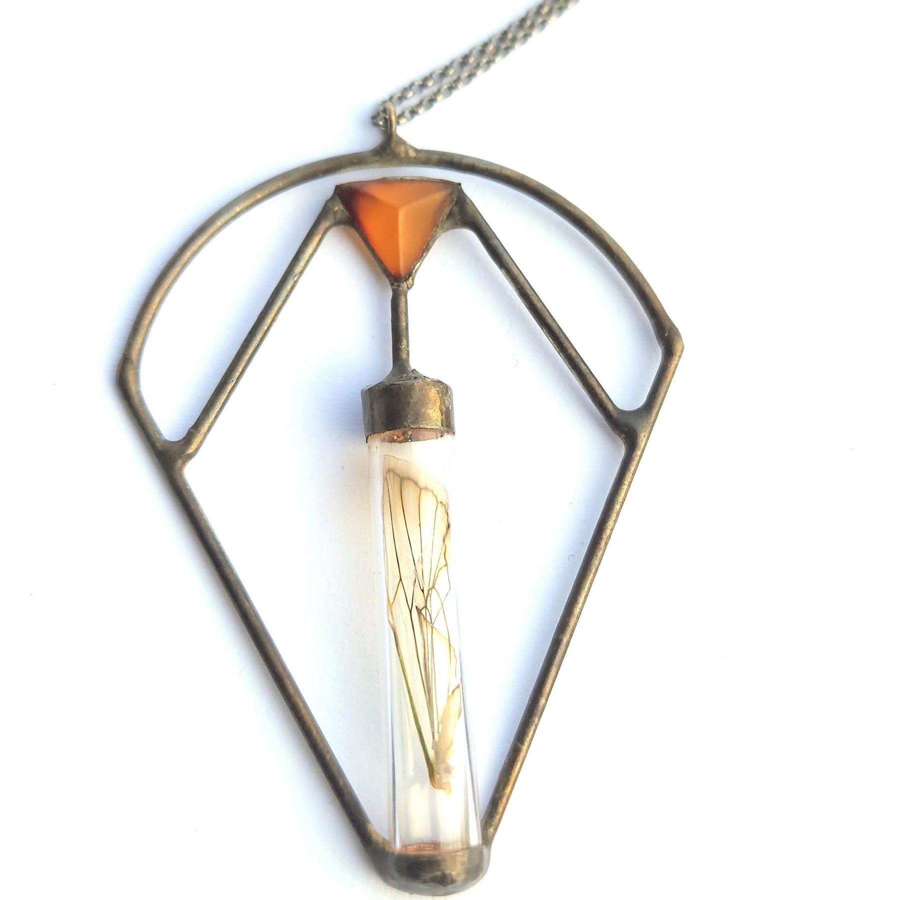 Cicada Wing + Amber Pyramid Necklace
