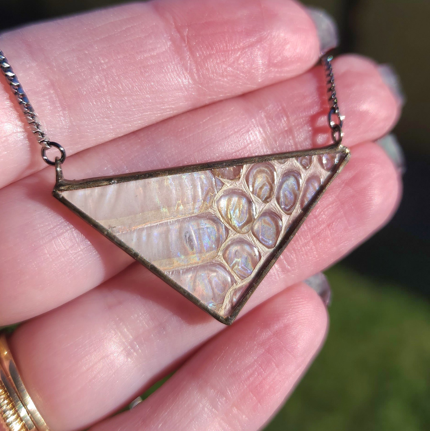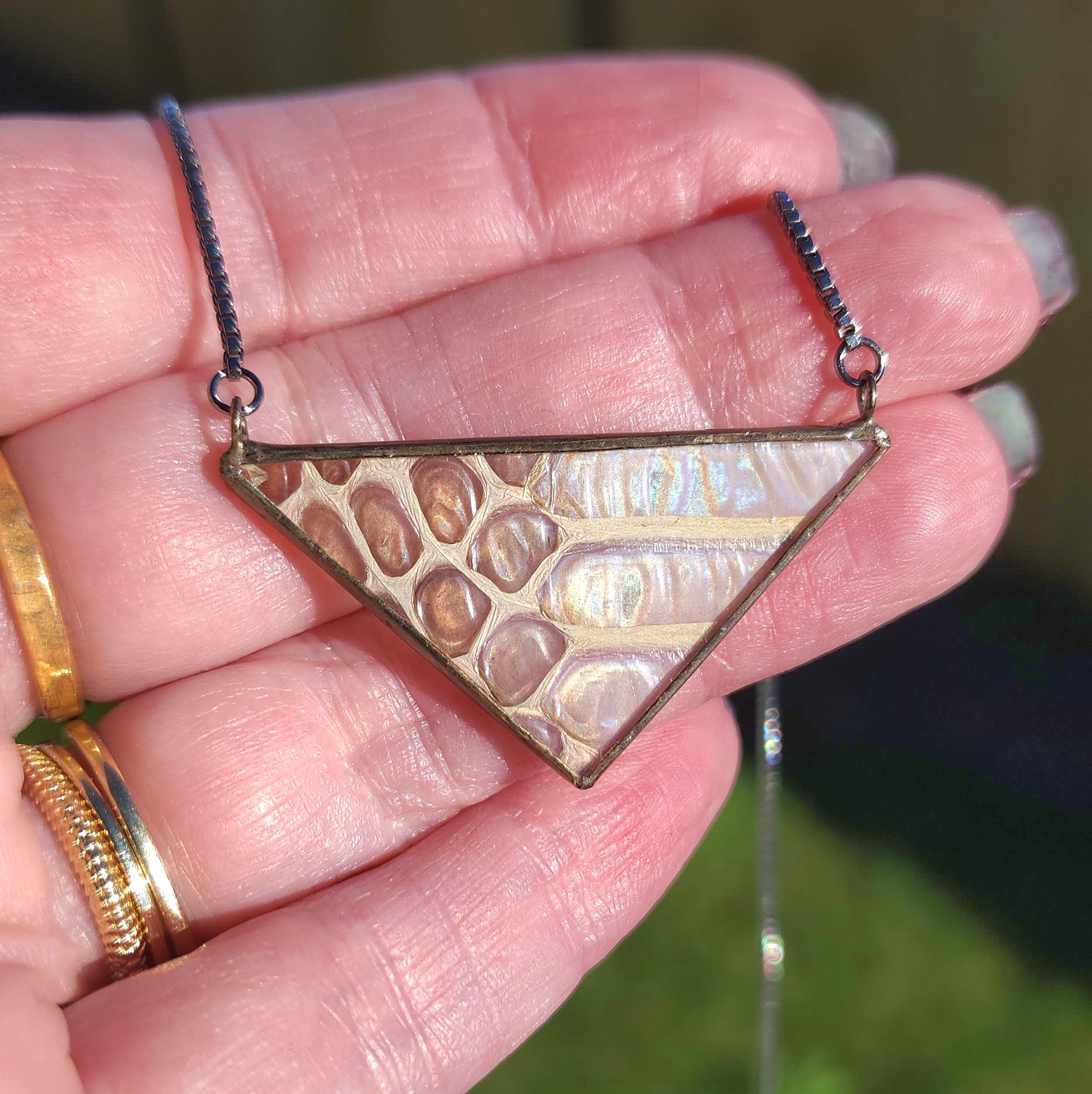 Iridescent Black Racer Snakeshed Necklace