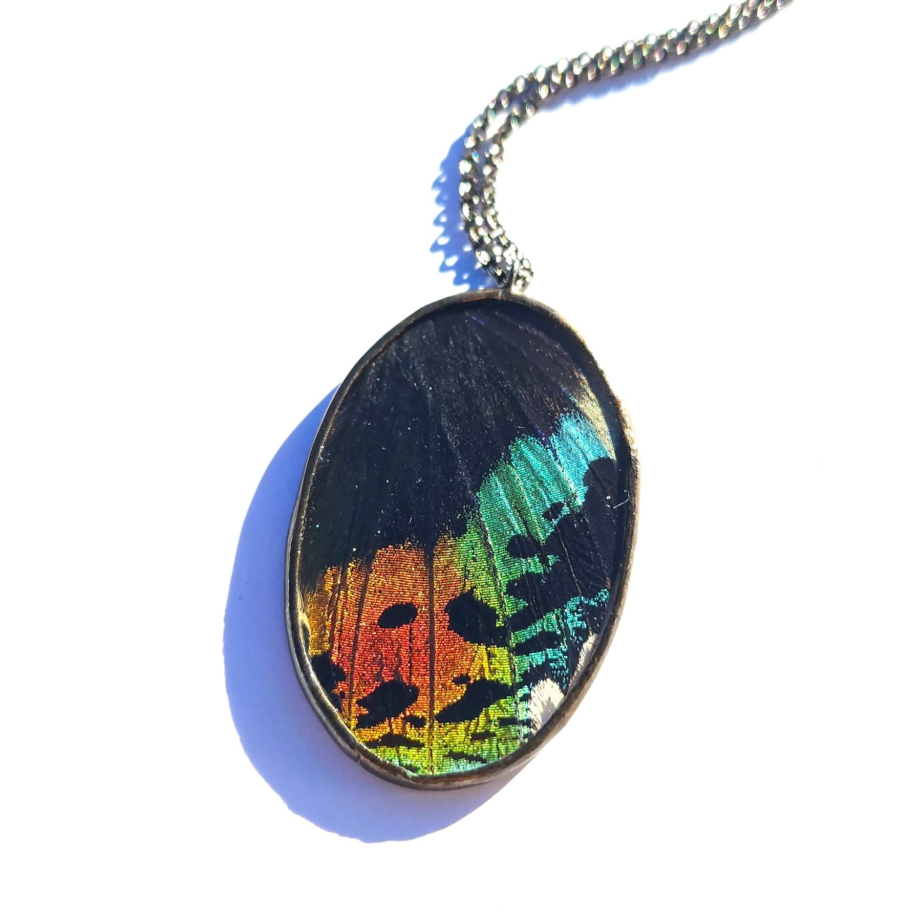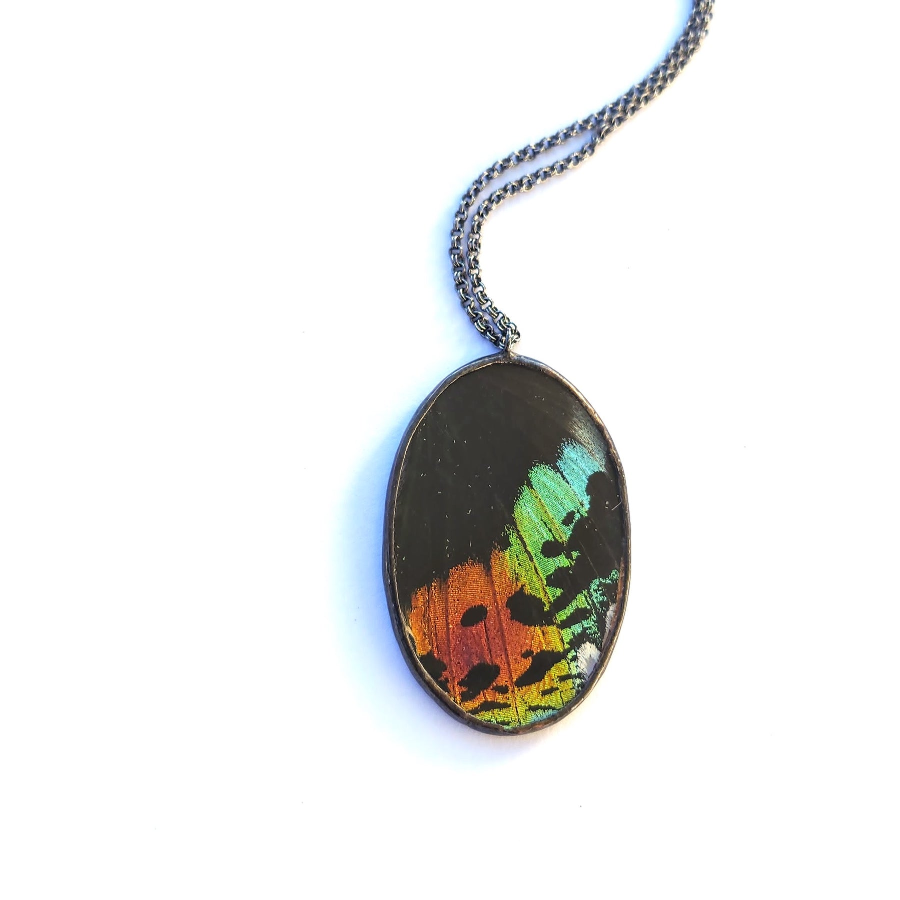 Rainbow Sunset Moth Oval Necklace
